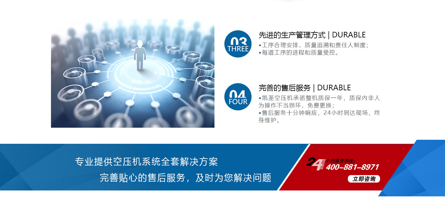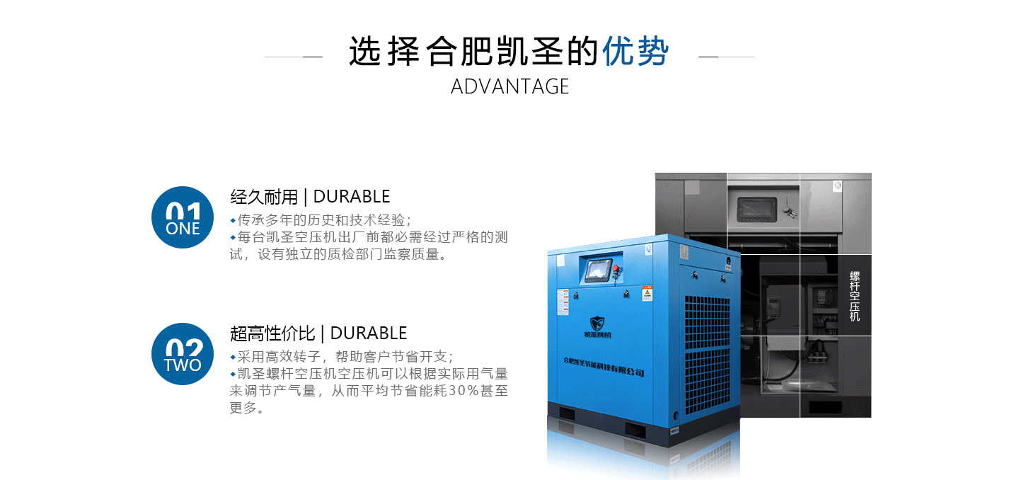 合肥凱圣節(jié)能科技有限公司是從事永磁變頻螺桿壓縮機系統(tǒng)的設(shè)計、制造、安裝、調(diào)試、維修與一體的公司。 在多年的螺桿空壓機研發(fā)與推廣歷程里,凱圣聚集和培養(yǎng)了大量壓縮機技術(shù)設(shè)計和管理人員,迅速發(fā)展成為集研究、生產(chǎn)、銷售、服務(wù)等環(huán)節(jié)為一體、嚴(yán)格按照標(biāo)準(zhǔn)執(zhí)行的企業(yè),公司成立開始,即以滿足客戶的實際需求為己任,大力開拓國內(nèi)外節(jié)能型空壓機市場,并始終保持創(chuàng)新精神,全力研發(fā)更為節(jié)能的螺桿式空壓機,努力站在空壓機節(jié)能領(lǐng)域的排頭位置。 應(yīng)用范圍:公司產(chǎn)品廣泛應(yīng)用于機械、輕工、紡織、食品、石油、化工、冶金、礦山、電力、城建、醫(yī)學(xué)研究和科研等各行業(yè)中,將為節(jié)約能源做出巨大貢獻。公司秉承“信譽至上,...